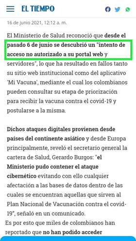 - ¿El presunto ataque comprometió toda la integridad informática?, ¿es decir, MinSalud también fue vulnerado?